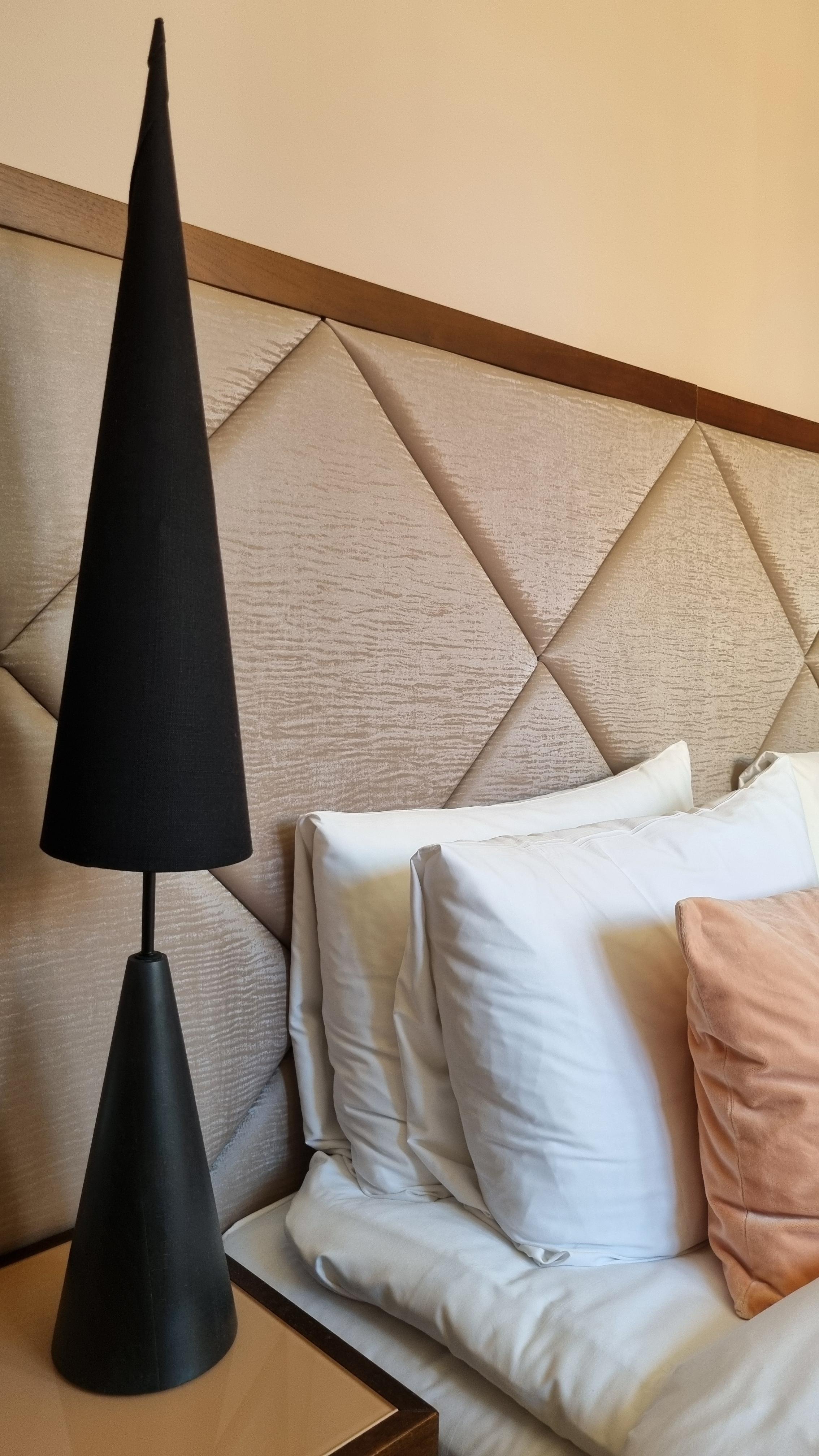 Štíhlá kuželovitá silueta v minimalistickém černém provedení